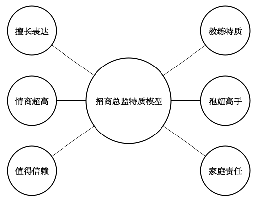 图9-3 招商总监特质模型{泡妞改为社交,情商超高改为情商很高}