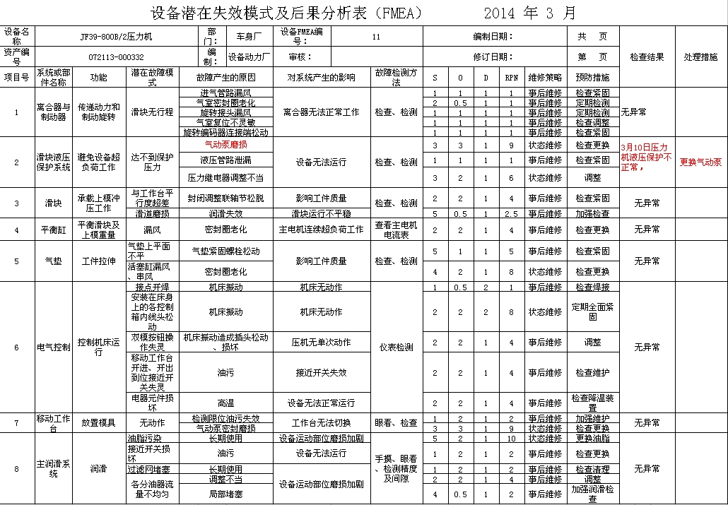 E-FMEA(Equipment Failure Mode and Effects Analysis),设备潜在失效模式及后果分析。任何设备,不管功能多么单一,都由动力系统、执行机构、控制系统等多个模块组成,每个模块又由多个零部件构成,所以它的失效模式也必定是存在很多种可能性的。为了确保设备的稳定运行,减少事后维修的时间,我们有必要对设备进行失效模式与影响分析。