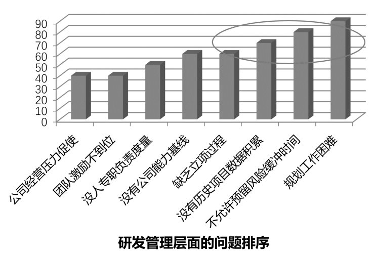 事实上,还没有足够的证据显示产品管理领域的问题。也许确实存在这样的问题,以致相当多的研发项目存在风险很大的“技术研究”成分而陷入苦战;也许仅仅是偶然事件,其他项目表现得不错。如果期望该问题获得印证,咨询师需要将视野移至产品管理领域,开展新的调研。