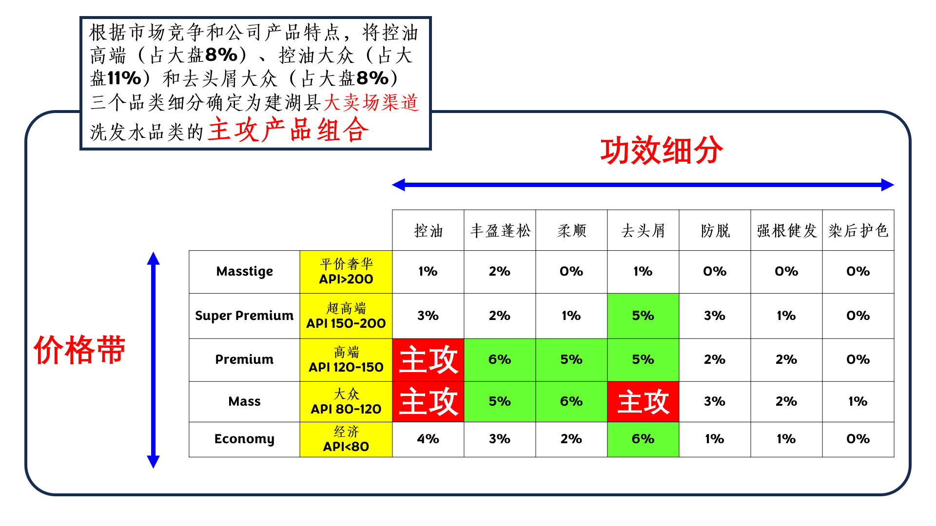 “王总,超过5%生意占比的洗发水细分类目一共有10个,这10个又同时涉及四个价格带和四个功效带,我想如果同时聚焦10个工作重点,那不就没有重点了吗?”小王疑惑地问道。