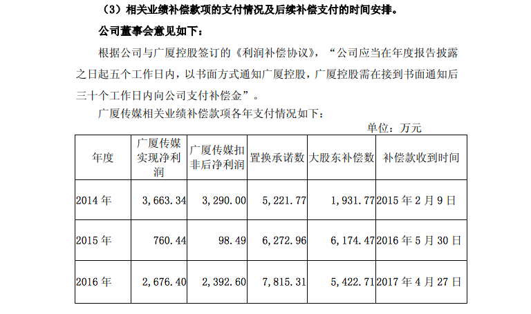 (摘自《浙江广厦股份有限公司关于回复<上海证券交易所关于对公司2016年年度报告的事后审核问询函>的公告》)