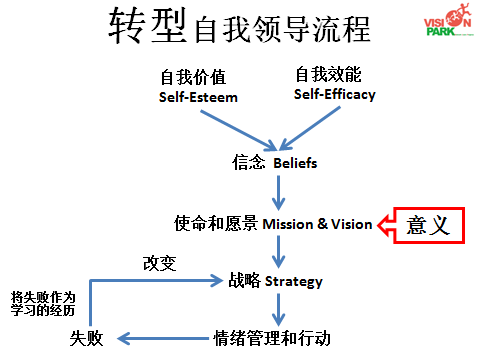 下图是一个有助于个人或企业的“转型自我领导流程”,供读者参考: