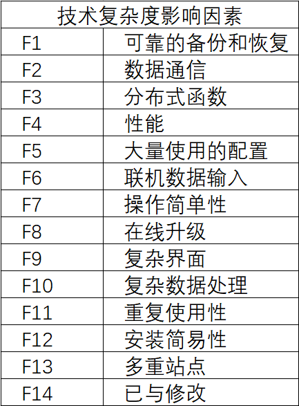 每个技术复杂度影响因素的取值范围,见表5-2。