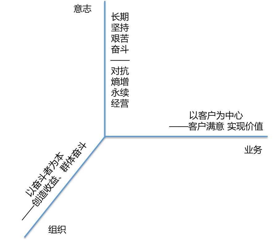长期坚持艰苦奋斗:指导组织成员持续发现问题、解决问题,对抗个体熵增和组织熵增,不断实现组织和业务突破的能量源泉,解决了如何永续经营的问题。
