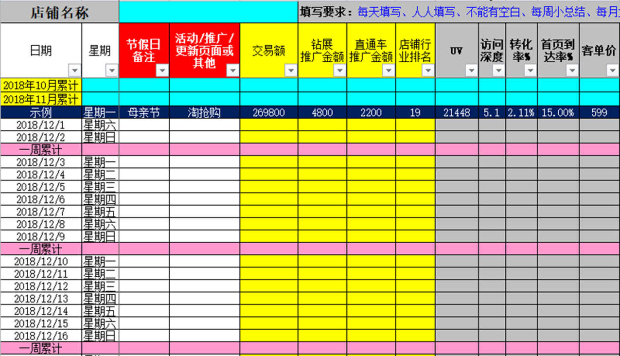 ​ 每个人对业务的整体和细节有更深的认识后,他们的成就感、责任心都会得到提升。店铺的数据分析,不仅仅要每个人看到,还要看得懂数据的含义;不仅仅要知道数据的含义,还要每个人都会填写,还要能讲解数据,大家每个人都要轮流填写。