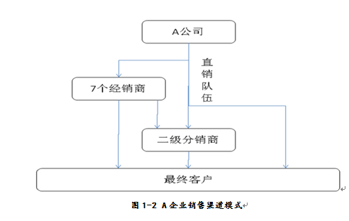 图1-5所示的是某企业采取的“行业业务部+区域业务部+区域经销商”分销模式,模式解读为: