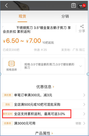 第三种营销工具是:累积返利。累积返利是一种激励买家持续购买的客户营销方式,卖家需对满足活动要求的买家按照累积交易成功金额的一定比例进行返利,以抵价优惠券的形式返利。这种模式在线下很常见,举个例子:我们常常用手机,手机有积分。中国移动、中国联通及中国电信就经常会用这种方式促销,只要积分满多少就送多少兆的流量,或者返还多少元的话费。除了上述几大运营商常用,很多微商也常用这种方法来设计自己的会员体系,用以增强代理们的黏性及活动收益。