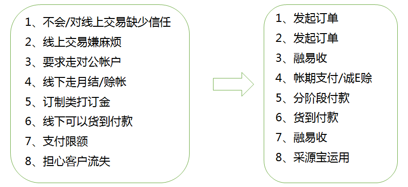 第六种营销工具合集:账期支付、分期付款、融易收、货到付款、诚e赊等。线下常见的客户付款方式,只要市面上在做的,那么1688平台就一定会想办法解决。如图9-13所示。