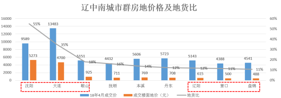 辽中南城市群整体房价中位值为5151元/㎡,地价中位值为711元/㎡ ;辽中南城市群地货比中位值为14%。地货比较高的三个城市为沈阳、大连、鞍山,应及时捕捉市场信息,防控拿地风险;地货比较低的三个城市为辽阳、营口、盘锦,应作为重点关注城市,寻找机会适时进驻。