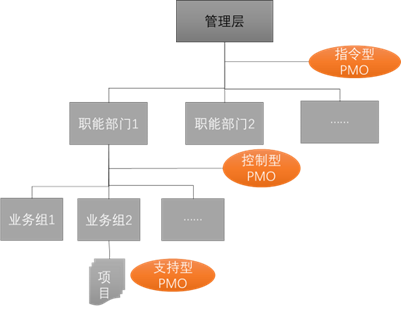 通常根据PMO对项目的控制和影响程度的不同,将PMO大致分成3种类型:支持型、控制型、指令型。