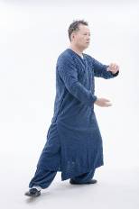 斜飞式的步伐跨得太大,所以我做起来时,开始有点摇晃很难稳定,后来慢慢收跨,当右手斜荡而出时,边落胯边右脚再更松沉,稳定度就越来越好了。但是,这个动作要能在末梢产生炁感,我觉得非常困难。动作幅度这么大,很难让周身形成整劲。而跨步过大的情况下,要能虚实分清,进而培育根劲,也并不容易。我需要再多练一阵子,才能对斜飞式有新的体会。