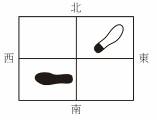 2.左脚踩下,将重心平移至右脚心,随即右脚踩下以涌泉带动腰胯与身体向右旋转,同时双手展开,右手自然伸长向东北侧荡起,松肩垂肘,右手肘高不过肩,中指尖对鼻尖,掌心向内。左手落于大腿旁后,掌心朝后,再度调整落胯与松沉。
