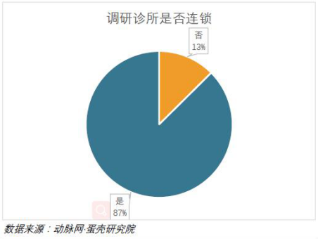 民营医疗机构,一定会往连锁化、规模化发展,才能降低成本、提高效率。中国的医疗市场中的连锁诊所、血透中心、第三方医学检验等医疗机构的连锁化、规模化都和美国市场有较大的差距。从我们的调研数据分析(图1-11、图1-12),新型诊所的连锁化率超过八成。不过,这个数据不是反映的整体诊所市场,而是以中高端新型连锁诊所为主的诊所市场。