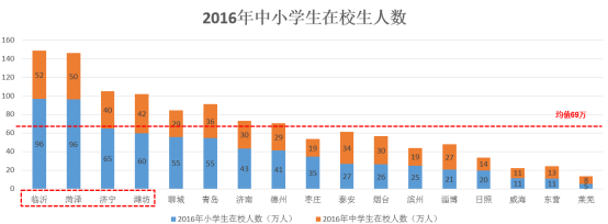 中小学在校生人数从某个维度上代表这个城市刚需和刚改家庭的规模。山东半岛城市中小学在校生人数均值69万人,超过100万人的城市有:临沂、菏泽、济宁、潍坊,这些城市的改善型购房需求较强