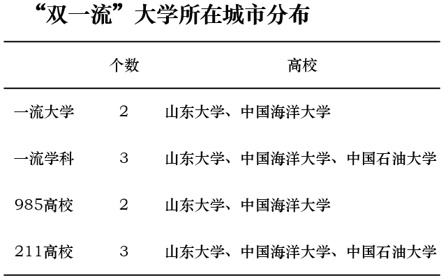 知名大学的创新活力影响和带动城市的创新活力水平。山东半岛城市群“双一流”大学共有2所,分布在济南和青岛,代表这两个城市创新活力较强。