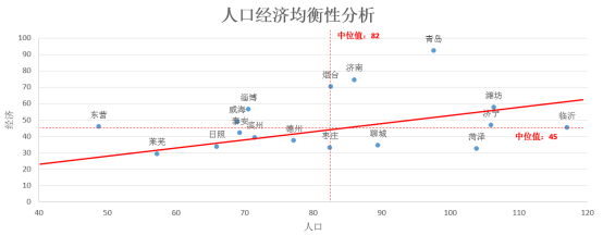 山东半岛城市群人口与经济沿均衡线发展,均衡线以下且偏离越大的城市更应该关注产业发展,其中菏泽、临沂、聊城、枣庄、济宁等城市要重点关注新产业进驻,有可能会带来城市发展的巨变;均衡线以上且偏离越大的城市更应该关注人口政策,其中青岛、济南、烟台、东营、淄博等城市要重点关注人口政策变化带来的人口集聚,有可能会带来人口短时膨胀。