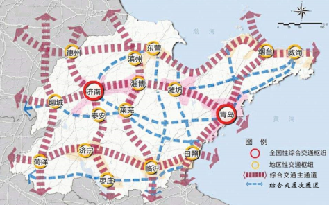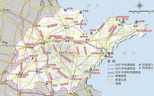 机场建设方面,山东半岛城市群增强青岛机场、济南机场的辐射带动作用,加快济南、青岛国际航空枢纽和国际航运中心建设,发挥烟台机场、东营机场的区位优势,加强与日韩航空的联系。
