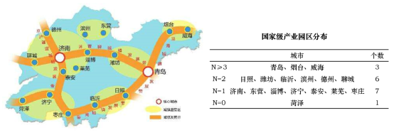 产业是人口集聚的主要因素,产业反映了城市经济支撑资源情况,产业的规划发展状态可以带动人口的流向。山东半岛城市群围绕胶济铁路沿线和沿海产业带沿线,形成“T”型发展架构。形成了济南、青岛、烟台-威海“三核先导”和六大产业集聚区:即东营-淄博的石化和医药产业带、济南的电子信息产业带、青岛-日照的家电制造产业带、烟台-威海的汽车制造产业带、潍坊-即墨的纺织服装产业带、日照-青岛-威海-烟台的海洋产业带。