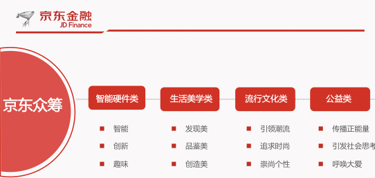 京东众筹定位:智能硬件、流行文化、生活美学领域,新奇好玩、具备生活品质的项目。支持彼此的梦想,注重参与感。