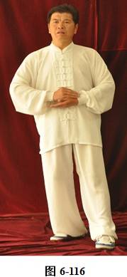 注意:单鞭在整套拳架中,起着承上启下的作用,应该注意中正。上身不可前倾,肩背不要倾斜。要呼吸自然,如欲左顾,则眼神领先于左顾; 欲右盼,则眼神领先之右盼。总之,要做到处处神意领先, 才能做到意到气到。