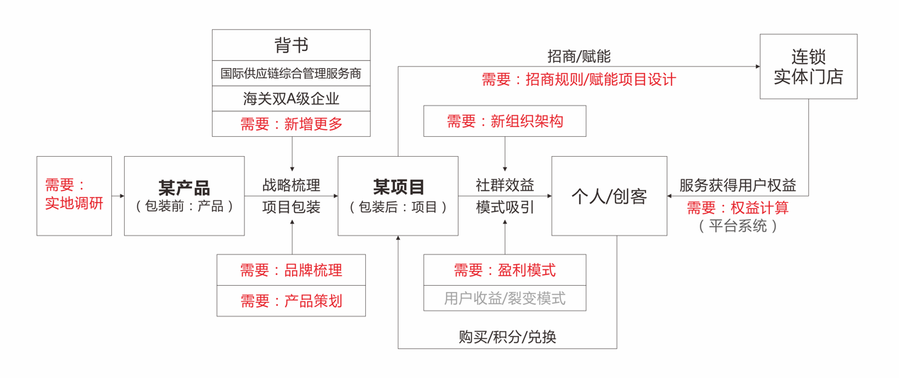 项目包装内容:项目设计(高附加值产品形成)、企业背书(包括现有的和争取的)、项目权益设定。