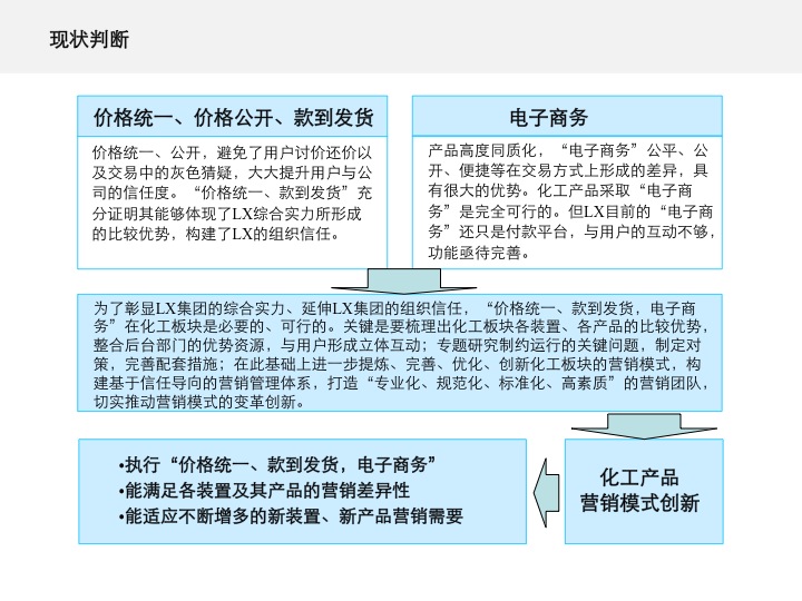 化工产品高度同质化,市场行情波动大。在一系列实地调研后,为了增加公司与用户的直接互动,LX大力推行价格公开、款到发货的电子商务。