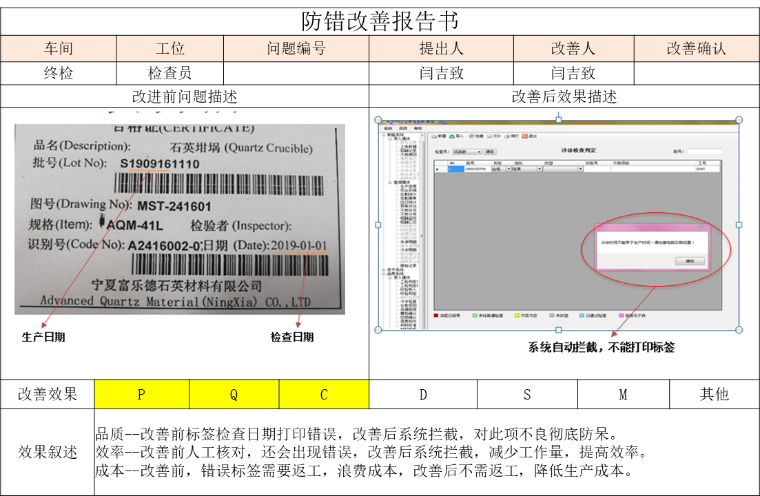 表10-34 防错改善报告