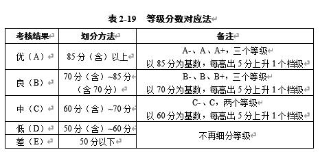 表2-19 等级分数对应法