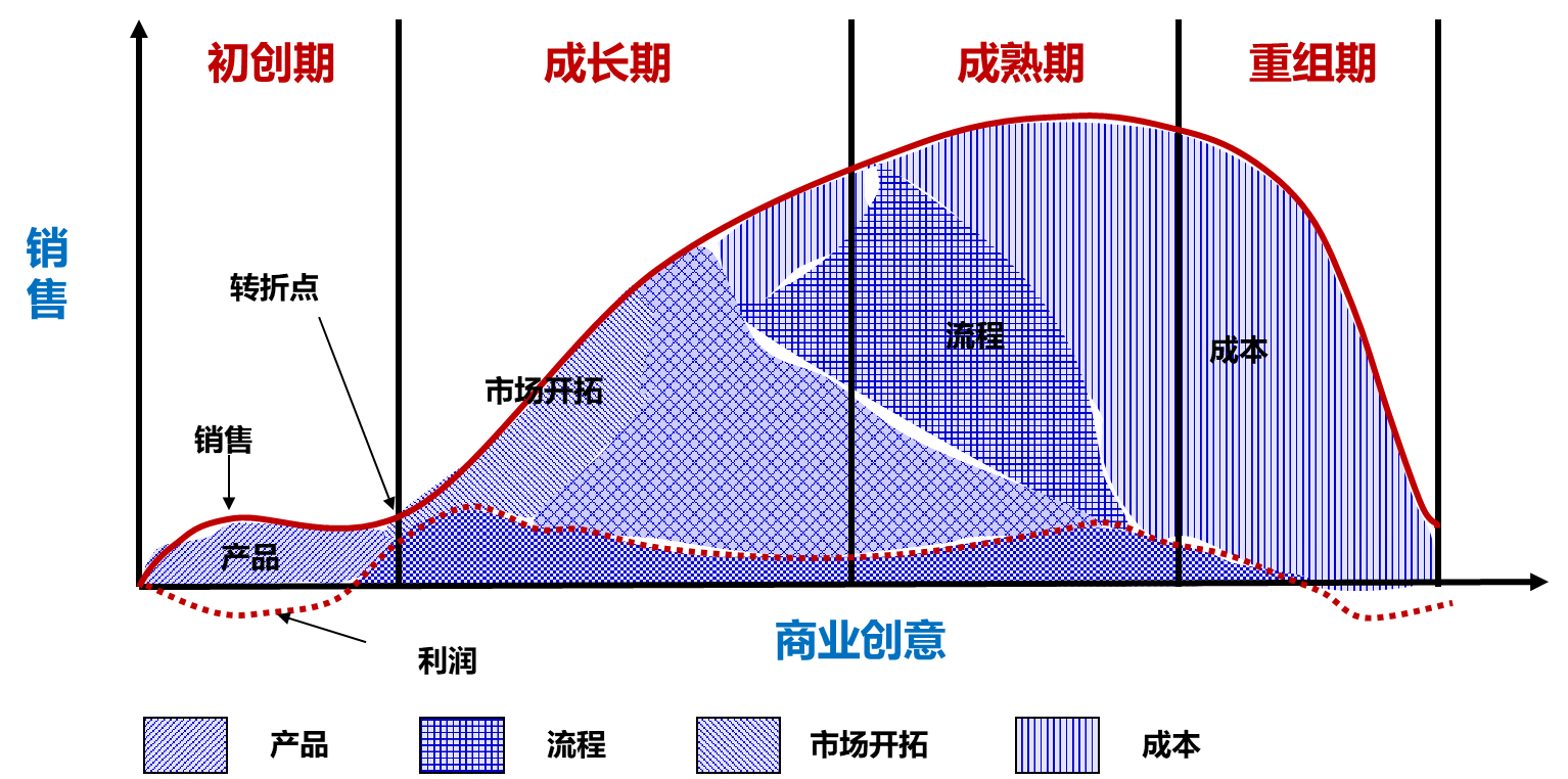 这一时期,现金流为负,企业要面临较大的生存压力,组织规模小,结构简单,管理权力高度集中,没有规范的管理流程,因人设事、随机应变。企业能力建设更多地关注商业洞察、产品开发、市场推广。