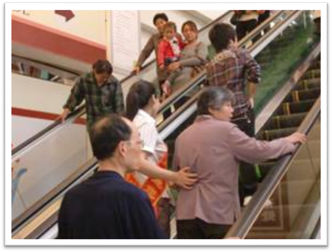 图5-3 搀扶老人上扶梯的员工