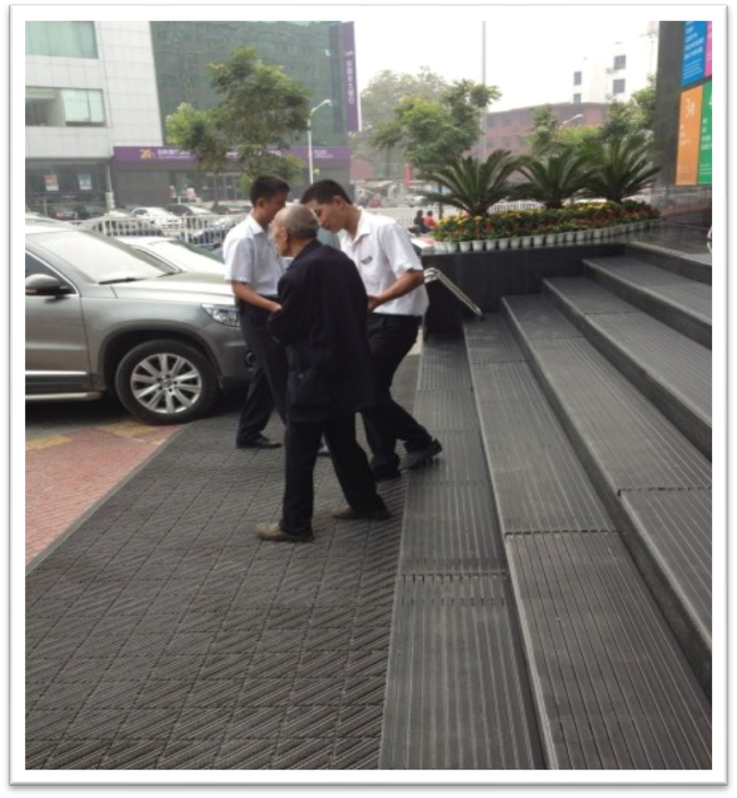 图5-4 接送老人下楼梯的保安