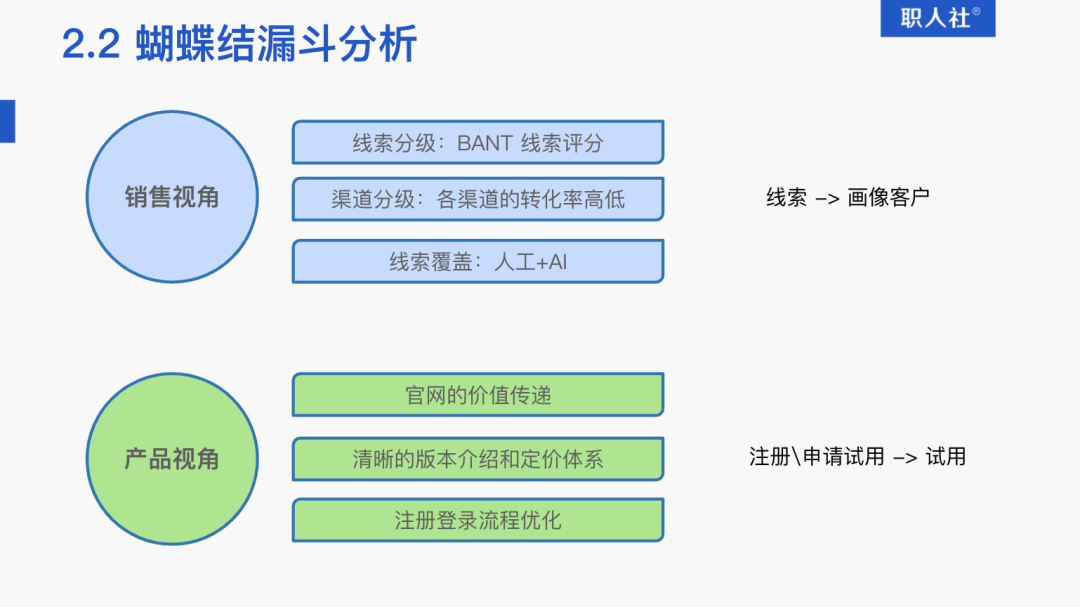 蝴蝶型的用户漏斗主要集中在如下几个方面: