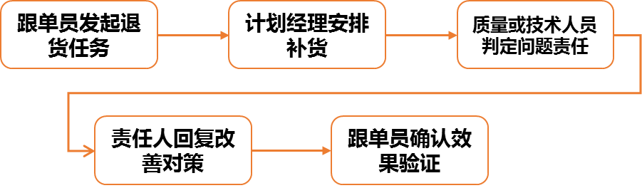 此流程从接到客户投诉开始,确定了投诉窗口为客服部或品质部,窗口流出到责任判定部门,判定责任后需要回复相应的改善对策,客服部与品质部将改善对策反馈到客户处,客户对方案表示满意后,再开展后期的对策落实稽查、大数据分析等工作,直到产生实际效果为止。