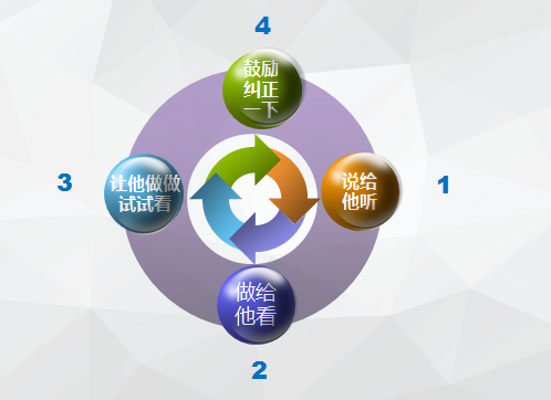 第四步:鼓励纠正一下。做得好,管理者要鼓励员工;做得不好,管理者要重复一遍前面的流程,直到员工顺利完成操作,熟练掌握技术要领。