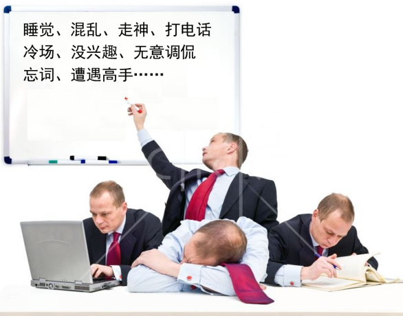 (3)小技巧:可以在他要睡还没有睡的时候做眼神交流,表示我在注意你,我已经看到你有睡觉的倾向了,我已经发现你的不妥行为,让他自己警醒自己。还有就是内训师说一句话,让大家写下,让每个人动笔写字,调动他的手和思维,也会起到让他们不睡觉的效果,还有类似的方法就是,请大家跟读,让大家一起读一段文字也是很好的方法。
