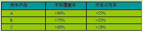 表4-1 竞争产品的市场覆盖率和市场占有率