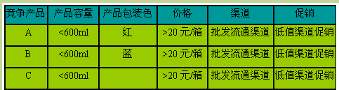 (1)瓶装水是市民消费品,大容量产品受大众欢迎,而竞争产品均是低于600ml的产品,采用可口可乐公司经常运用的大包装产品操作方式,应该有机会获得消费者的青睐。
