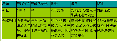 (5)可口可乐公司从不利用促销活动变相降价,这种优势一定要在冰露水上市时发挥出来。