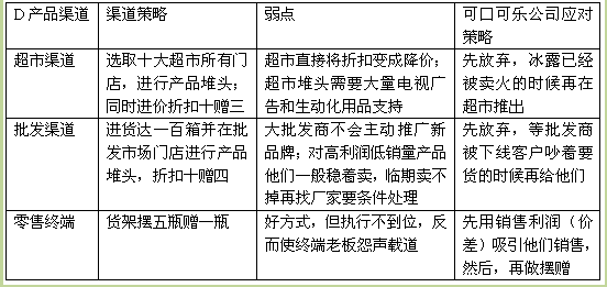 表4-6 可口可乐公司对D品牌渠道的应对策略