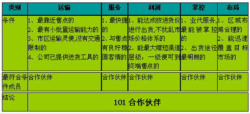 表4-7 可口可乐公司选择101渠道