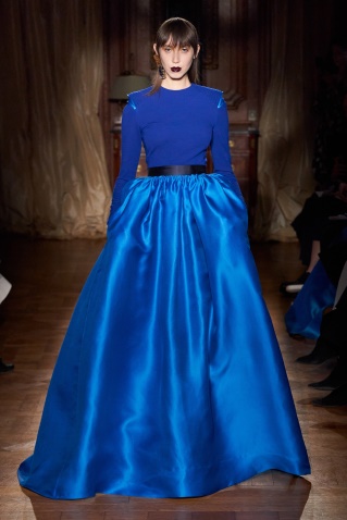 柔软与坚硬性:柔软与坚硬不一定需要通过面料的质感来表现,利用色彩也可以表现出这些性质。明度高且纯度低的色彩给人柔软柔和的感觉,低明度、低纯度色彩则表现出坚硬感。如图8-31、图8-32所示,同样材质的服装,暖色调给人柔和、柔软的感觉,而冷色调的蓝绿比较之下增加了几分坚硬感。
