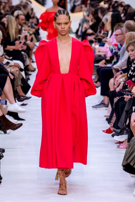 膨胀与收缩性:利用色彩能产生膨胀与收缩感,就如我们熟悉的法国国旗由红白蓝三色构成,视觉上红白蓝三色比例是相等的,但实际上各颜色的比例是有差异的。据说法国国旗的红、白、蓝三色条纹,开始设计宽度完全相等,但当升到空中后,感觉显得不等了,最后经过研究才知道这与色彩的膨胀感和收缩感有关,当三色比例调整到红35、白33、蓝37时,才感到宽度相等了。从上面的数字可以看出,蓝色的面积最大,因此蓝色的收缩感最强,其次是红色,因为收缩与膨胀与色彩的色相与明度都有关系,在视觉上暖色有膨胀感,冷色有收缩感,高明度的色彩有膨胀感,而低明度的色彩有收缩感。如图8-33、图8-34所示,同样是A形廓形,白色裙子具有扩张感,而低明度的紫色连衣裙使人看起来更纤细。因此买手挑选货品的时候,对于高明度的有膨胀感的货品,要看看设计上有没有一些细节的设计来中和扩张感,使穿着起来更加协调。