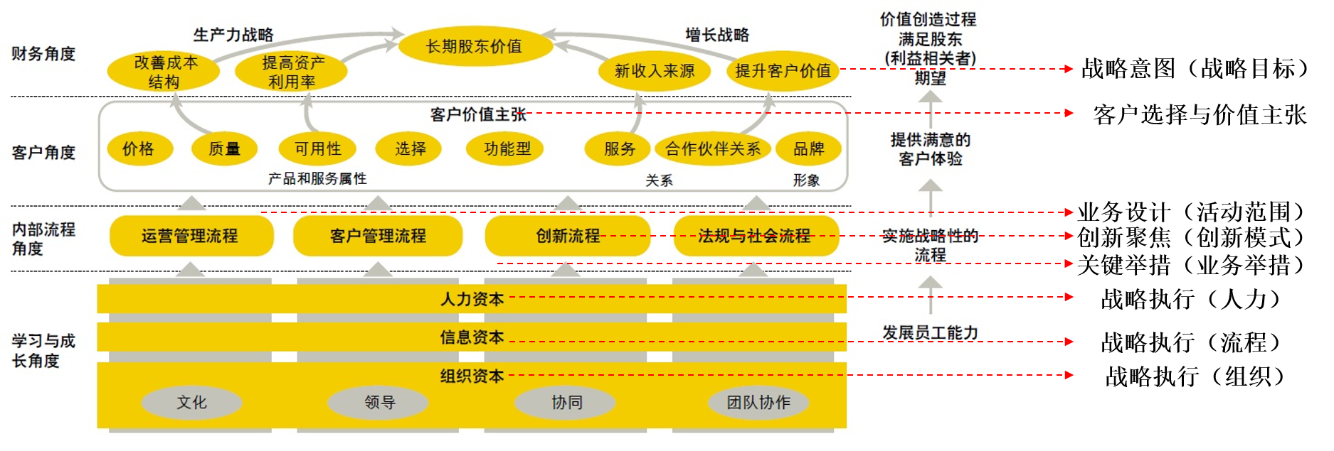 战略措施 | 平衡积分卡、战略地图 | 通过多次解码实现战略战术分解,输出年度重点工作 |