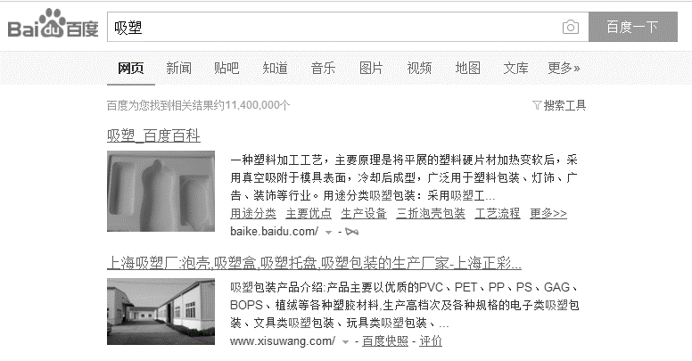 图2-8 在百度搜索“吸塑”一词,www.xisuwang.com始终在搜索结果首页